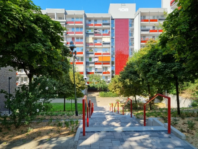 Der neugestaltete Quartierseingang Ost am Ben-Gurion-Ring 102 wurde Anfang August 2025 eingeweiht. Ziel war es, die Aufenthaltsqualität zu verbessern und dem Quartierseingang ein neues, offenes Erscheinungsbild zu verleihen. Dabei konnten die Anwohner:innen ihre Ideen und Wünsche frühzeitig im Rahmen mehrerer Beteiligungsveranstaltungen einbringen. Diese flossen direkt in die Planungen ein.
