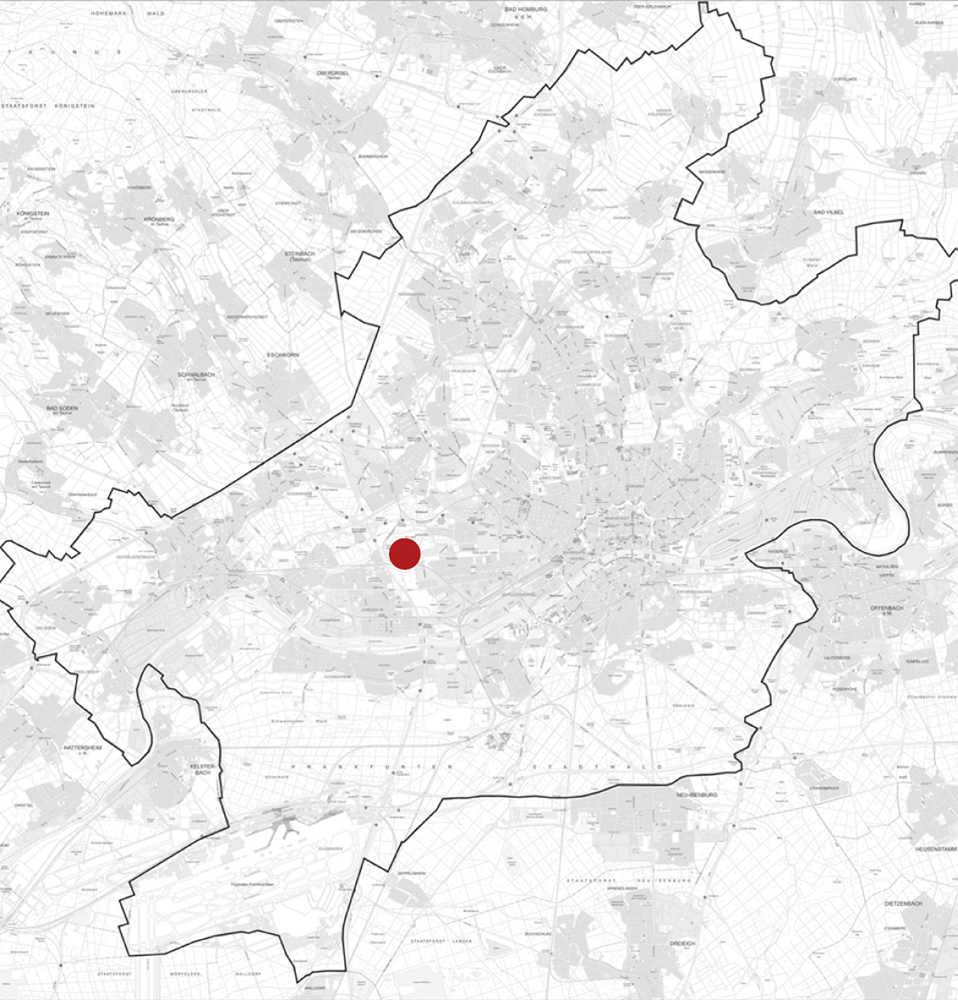 Das Plangebiet liegt im Stadtteil Bockenheim unterhalb des Rebstockparks und der dortigen Kleingartenanlagen. Es umfasst den städtischen Busbetriebshof der In-der-City-Bus-GmbH, sowie Teile des Rebstockparks, sowie in westlicher Richtung den künftigen Querschnitt der Straße Am Römerhof bis zur Behelfsabfahrt der BAB 5 im Westen.