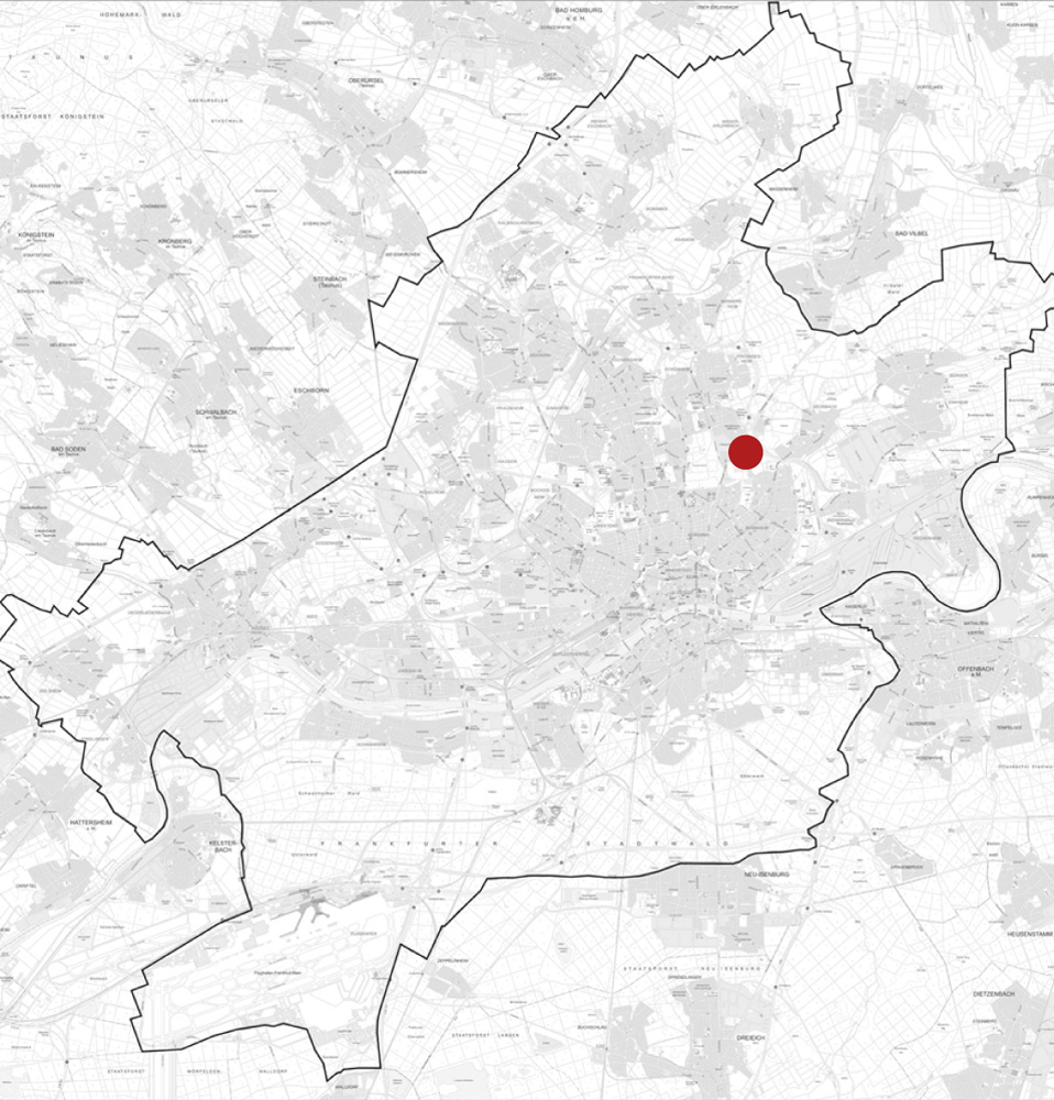 Das Plangebiet wird im Nordosten von der Dortelweiler Straße und im Südosten von einem allgemeinen Wohngebiet an der Comeniusstraße begrenzt. Im Süden und Südwesten grenzen die Flächen an den Günthersburgpark an. Das Plangebiet umfasst rund 1,15 Hektar.