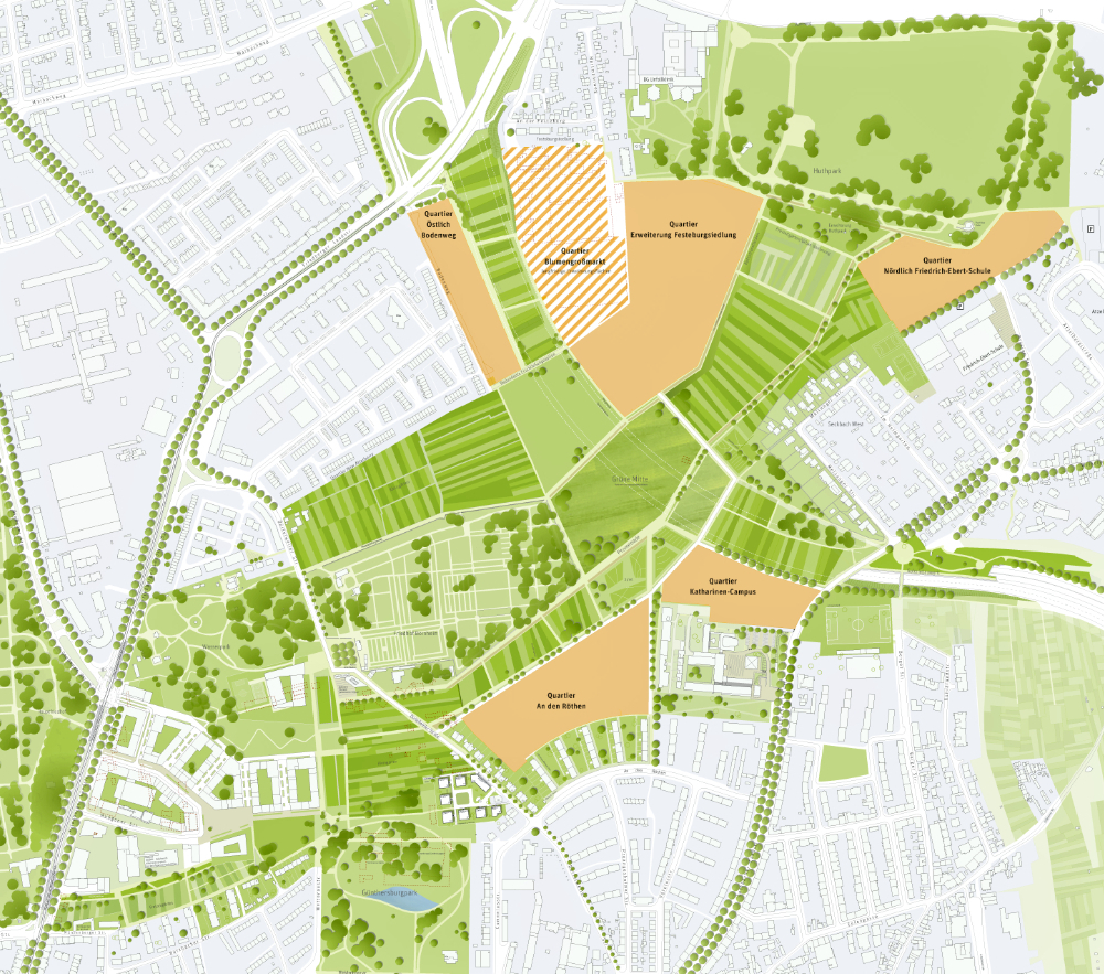 Die städtebaulichen und landschaftsplanerischen Zielaussagen für das Untersuchungsgebiet sind aus der Rahmenplanung des Büros Pesch und Partner und Glück Landschaftsarchitektur entwickelt.