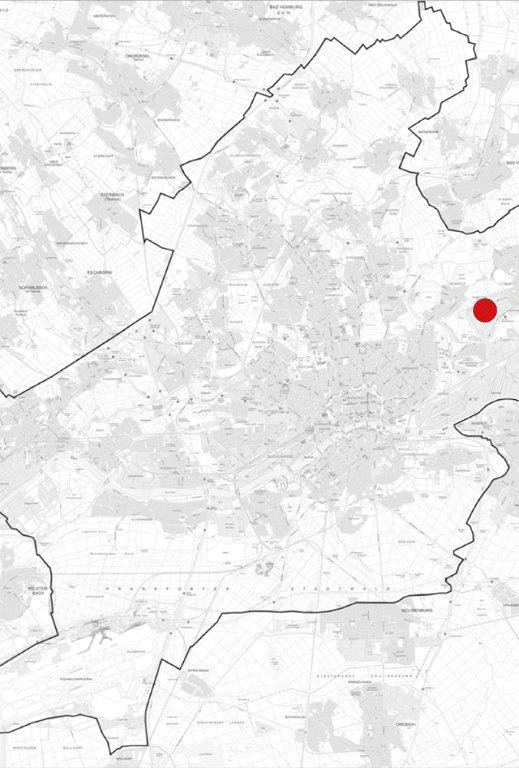 The development district is located in the south of the Seckbach district and is about 100 hectares in size. In the north, the development district includes the Gelastrasse housing estate erected in the 1930s and directly abuts the “Seckbacher Ried” nature reserve. In the northwest, west, and southwest, it borders on the nature protection zone “Frankfurt/Main Green Belt and Green Areas, Zone I”. To the southeast is Fechenheimer Woods which is also part of the nature protection zone “Frankfurt/Main Green Belt and Green Areas, Zone II”. To the south of the development district is the Riederwald working-class housing estate built in the 1920s as well as the industrial park to one side of it (Development Plan no. 849). In the east, the development district borders on the Victor Slotosch Strasse Commercial Park (Development Plan no. 390).