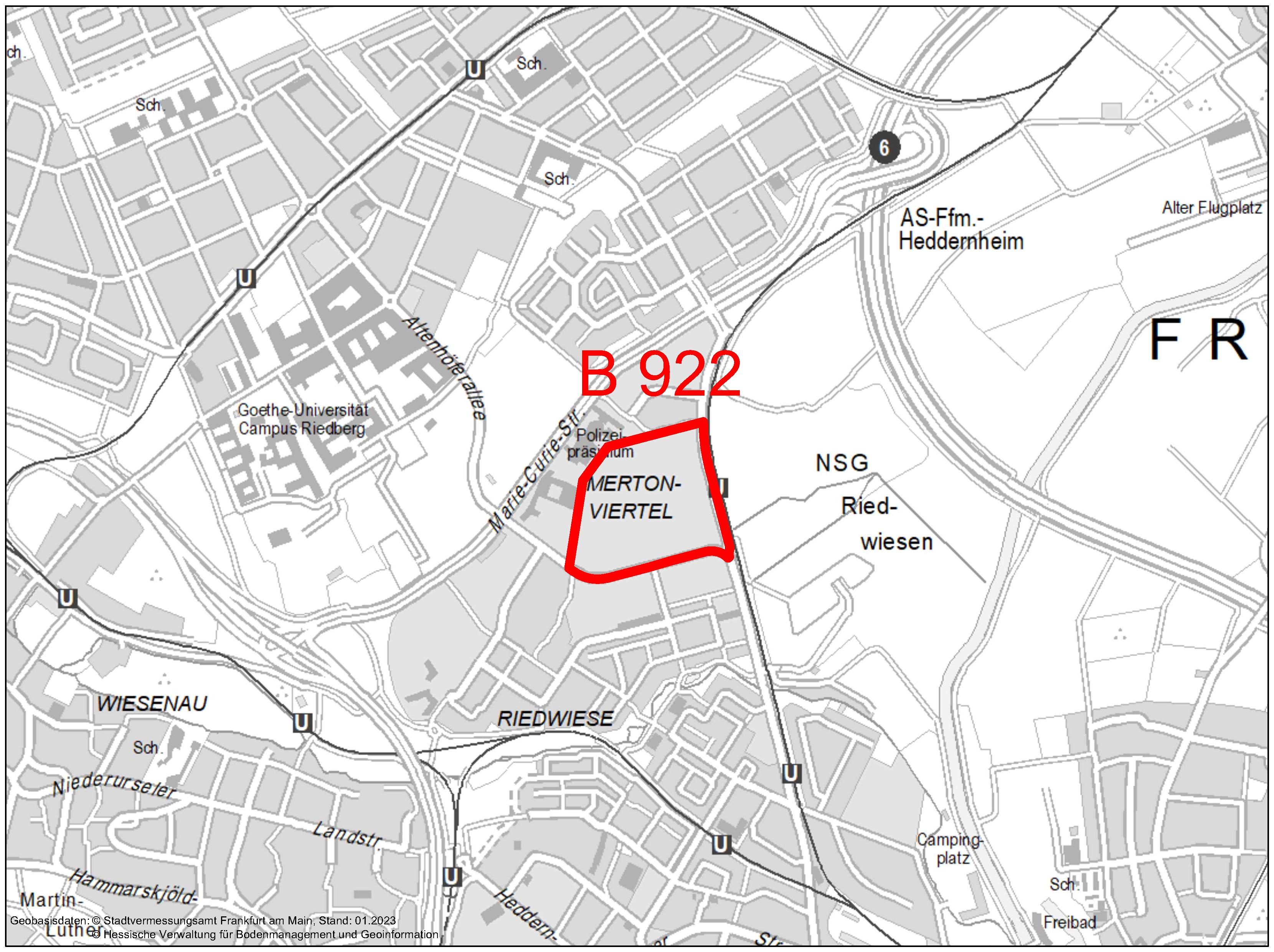Die Beschlussfassung über die Aufstellungsbeschluss-Änderung des Bebauungsplanes Nr. 922 - Nördlich Lurgiallee - wurde am 17.02.2026 im Amtsblatt Nr. 8 der Stadt Frankfurt am Main bekannt gemacht.