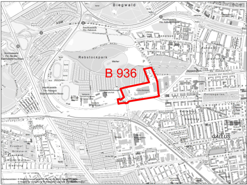 Geltungsbereich des Bebauungsplans Nr. 936, © Stadtplanungsamt Frankfurt am Main