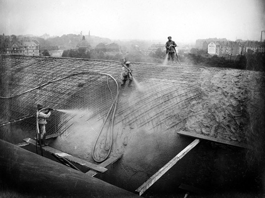 Das Besondere am Bau der Großmarkthalle sind die 15 Tonnenschalen von nur 7,5 cm Stärke, die die 50 m breite Halle pfeilerlos überspannen.