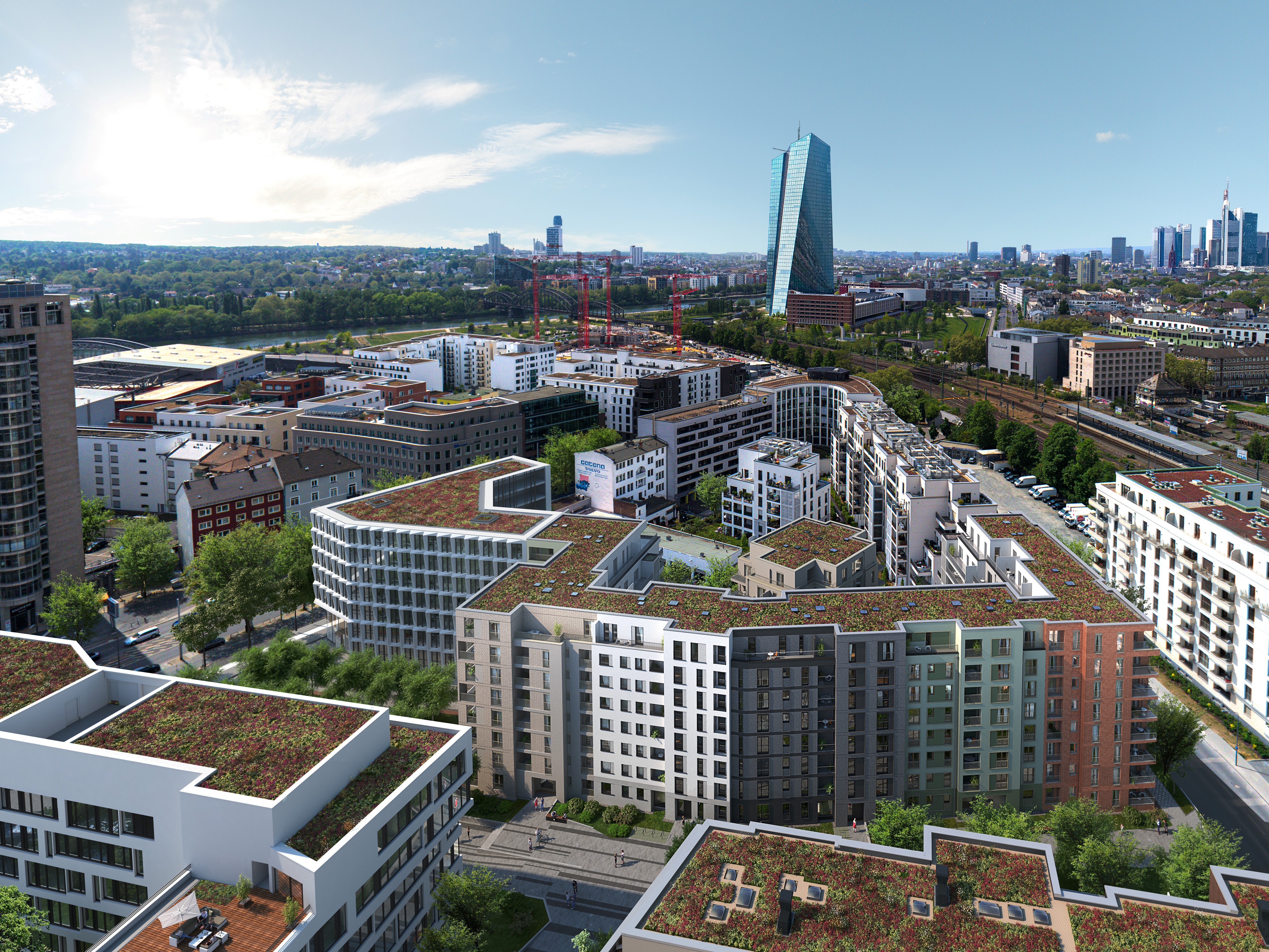 Gemäß dem städtebaulichen Konzept ist auf dem ehemaligen Mercedes-Areal 30 % der künftigen Bebauung für eine gewerbliche Nutzung und 70 % für eine Wohnnutzung vorgesehen. Die lärmunempfindlichere gewerbliche Nutzung ist dabei in der südlichen Hälfte des Plangebiets an der stark befahrenen Hanauer Landstraße verortet. Die Wohnnutzung soll dagegen in der ruhigeren nördlichen Hälfte untergebracht werden. Dabei ist geplant, 30 % der Wohnfläche für den geförderten Wohnungsbau zur Verfügung zu stellen. Eine Kindertagesstätte ist ebenfalls auf dem Areal vorgesehen.
