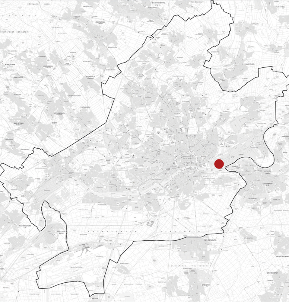 Das Plangebiet befindet sich im südlichen Ostend und dort zwischen Ostbahnhof und Osthafen. Es liegt unmittelbar nördlich der Hanauer Landstraße, auf der gegenüberliegenden Seite des Osthafenplatzes und verfügt über eine Fläche von rund 2 ha.