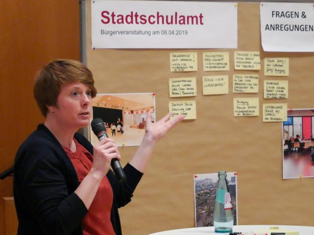 • Markt der Möglichkeiten: Erläuterung von Maren Hullen, Abteilung Pädagogische Grundsatzplanung, Stadtschulamt  &copy Stadtplanungsamt Stadt Frankfurt am Main