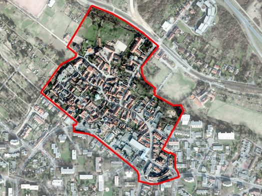 Angesichts der erhaltenswerten städtebaulichen Struktur wird kein radikaler großflächiger Umbau, sondern eine behutsame Weiterentwicklung aus dem Bestand heraus angestrebt. Diese basiert auf dem Zusammenwirken mehrerer kleinteiliger Entwürfe und Planungen, die sich sowohl auf die privaten Grundstücke als auch auf den öffentlichen Raum - Straßen, Wege, Plätze, Grünflächen - beziehen.