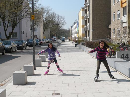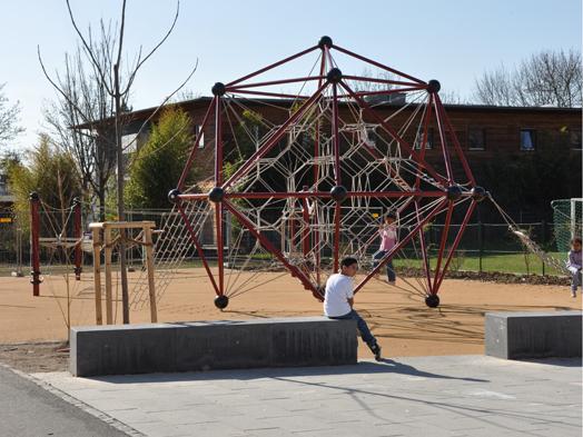 Parallel zum Schulhof wurden zwischen 2002 und 2005 in einem interaktiven Planungs- und Ausführungsprozess vier Spielbereiche im Gebiet neu geschaffen: