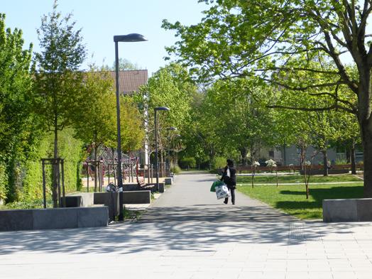• Blick in die Grünanlage vom Stadtteilplatz, © Stadtplanungsamt Stadt Frankfurt am Main