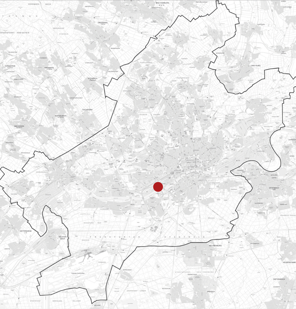 Das rund 20 Hektar große Gebiet befindet sich am nördlichen Mainufer. Nördlich des Planungsgebietes verläuft die Gutleutstraße, die mit der Anschlussstelle Westhafen den motorisierten Individualverkehr (MIV) wie auch den öffentlichen Personennahverkehr (ÖPNV) durch die Buslinien 37 und 87 bedient. Die südliche, natürliche Begrenzung durch den Main umfasst das Planungsgebiet bis zur Verlängerung der Erntestraße im Westen an der Schnittstelle zum Hafengebiet (Betonwerk).