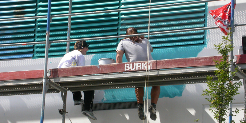Das Projekt war für arbeitslose Jugendliche und junge Erwachsene konzipiert. In der Gruppe wurden verschiedene Entwürfe für die Gestaltung der Außenfassade erarbeitet. Zum Inhalt des Projektes gehörte auch eine grundsätzliche Einführung in das Thema Fassadenmalerei sowie eine Konzeptpräsentation.