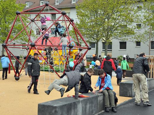 Parallel zum Schulhof wurden zwischen 2002 und 2005 in einem interaktiven Planungs- und Ausführungsprozess vier Spielbereiche im Gebiet neu geschaffen: