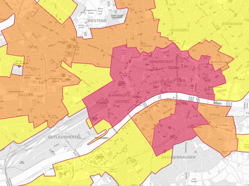 Ausschnitt planAS, Stellplatzsatzung, © Stadtplanungsamt Frankfurt am Main