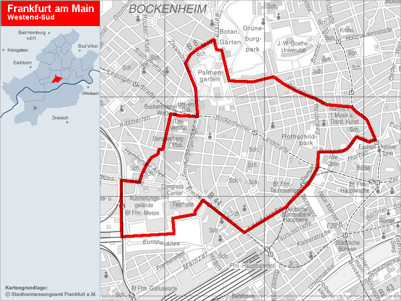 Nähere Informationen zum Stadtteil erhalten Sie auf den Stadtteilseiten des Internetauftritts der Stadt Frankfurt am Main oder direkt unter Westend.