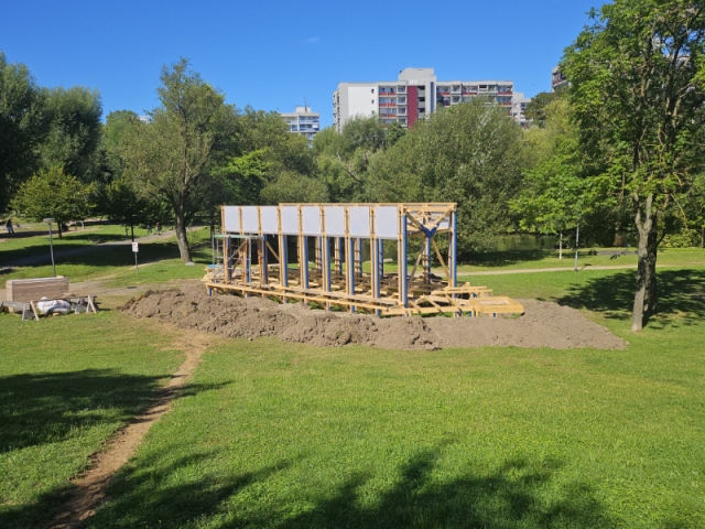 2024 wurde für die Planungs- und Bauzeit des Quartierscafés ein Interimsbau - das „Haus am See“ - gemeinsam mit Studierenden der TU Darmstadt und Bewohner:innen des Ben-Gurion-Rings gebaut. Das Projekt wurde im Rahmen eines Design+build Seminars 2023 und 2024 durchgeführt. Nach der Entwurfsphase der Studierenden wurde aus elf Entwürfen ein Projekt mit Bürgerbeteiligung ausgewählt und die Bauausführung vergeben.