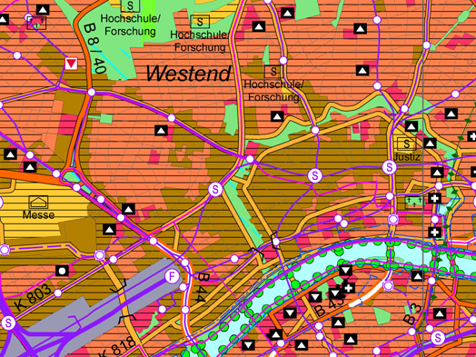 Ausschnitt Frankfurter Innenstadt im Regionalen Flächennutzungsplan 2010, Maßstab 1:50.000, © Regionalverband FrankfurtRheinMain