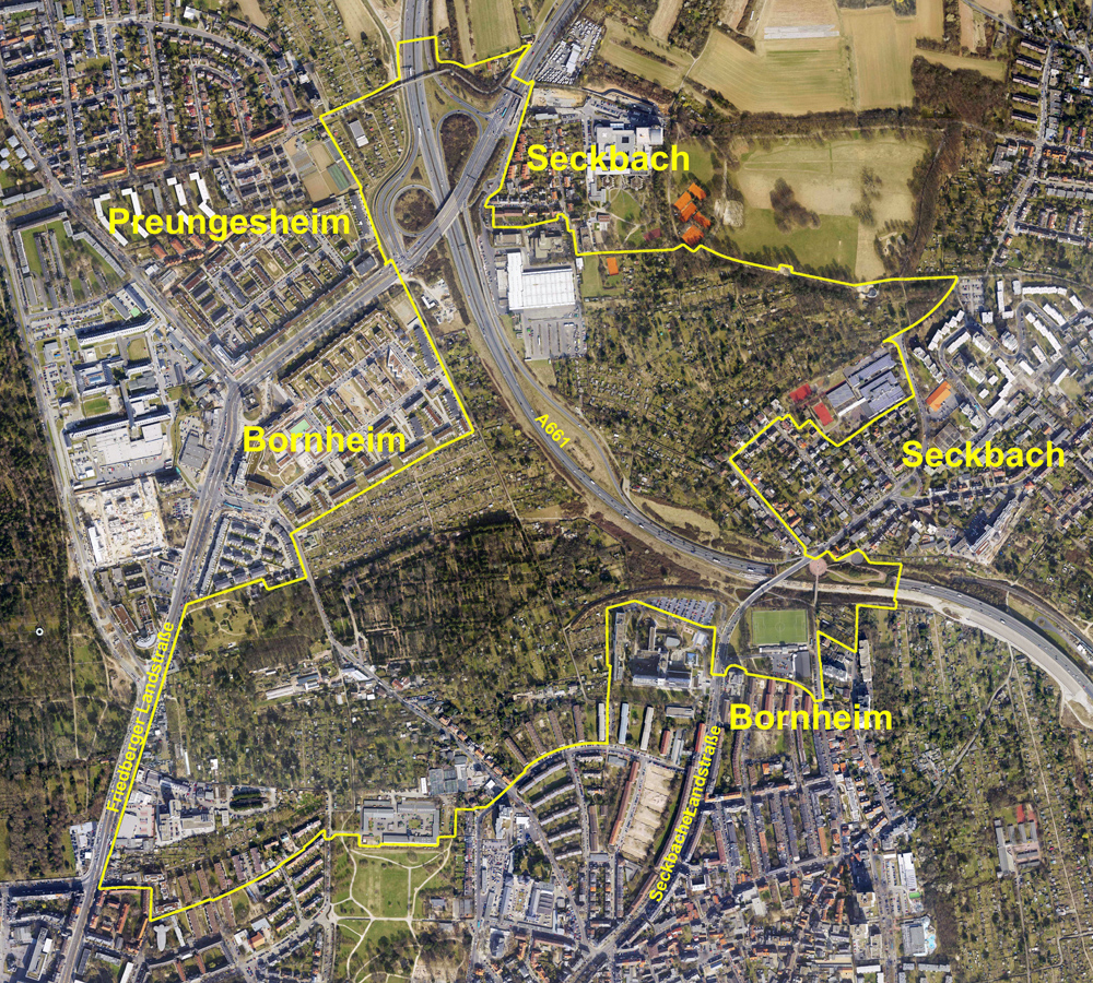- Herausnahme von zwei optionalen Wohnbaupotentialen, da hier keine rechtliche Zulässigkeit einer Entwicklungsmaßnahme gegeben war. Fortführung beider Teilflächen als eigenständige Bebauungsplanverfahren. Dadurch: Verringerung des Planungsgebietes auf circa 100 https://www.stadtplanungsamt-frankfurt.de/admin/c4s_admin_frameset.php?psid=3rif85taqjbh5jvpa3f3p4rqk3.