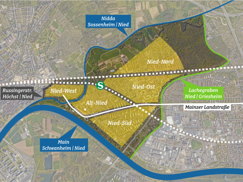 Nied ist ein Stadtteil im Grünen. Zu seinen besonderen Stärken gehören die attraktive Lage zwischen den Flüssen Main und Nidda sowie die fußläufige Nähe zum Frankfurter Grüngürtel. Anderseits bestehen besondere Herausforderungen, die Anlass für die Aufnahme in das Städtebauförderprogramm „Soziale Stadt– Investitionen im Quartier“ Ende 2016 waren. Das Städtebauförderprogramm wurde inzwischen umbenannt in „Sozialer Zusammenhalt“. Zur Umsetzung beantragt die Stadt Frankfurt am Main in einem Zeitraum von zehn Jahren jährlich Fördermittel vom Bund und dem Land Hessen. Zusätzlich muss sie einen kommunalen Eigenanteil einbringen.